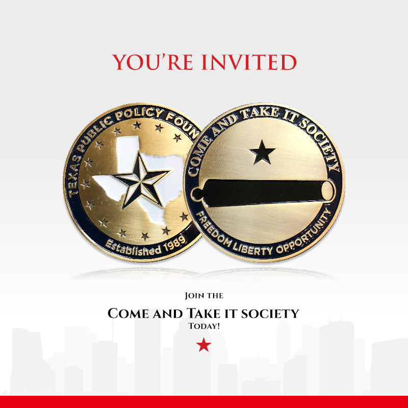The answer is the members of the Texas Public Policy Foundation’s Come And Take It Society, a committed group of Texans who give a monthly gift to preserve the values, policies, and freedoms that have made our state a pinnacle of liberty.