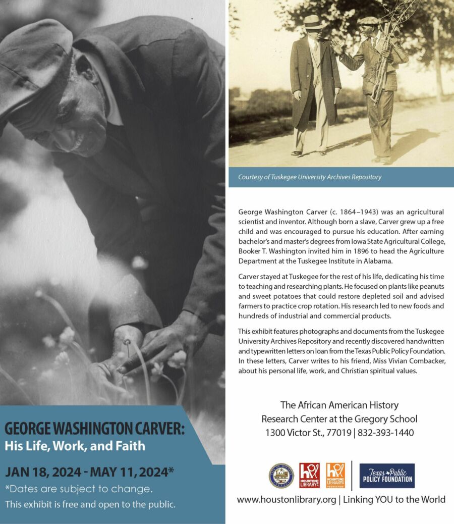 Please join TPPF for a cocktail reception celebrating the life and work of George Washington Carver, featuring personal letters loaned to the exhibit by the Foundation, as well as an in-depth exhibit featuring photographs and documents from his time at the Tuskegee Institute. TPPF’s Director of the Booker T. Washington Initiative, Dr. Richard Johnson, will also give remarks about our Booker T. Washington Initiative and our partnerships to make this event possible.