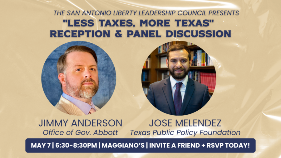 Join the San Antonio Liberty Leadership Council* (LLC) and fellow young professionals for a happy hour and panel discussion on one of the most pressing issues facing Texans today: property taxes.