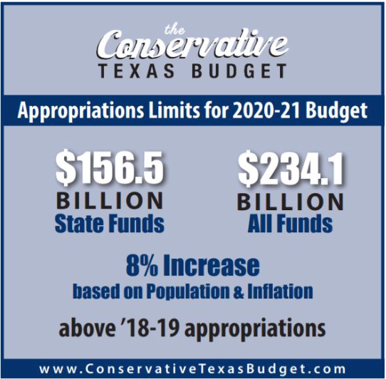 Let’s begin by reviewing the top fiscal priority of the 18 organizations in the Conservative Texas Budget Coalition—passing what could be a historic third straight Conservative Texas Budget that doesn’t increase by more than population growth plus inflation.