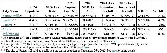 The nature of Whitesboro’s indecent proposal is unique in some regard. After all, the threatened tax increase is mammoth, both in terms of actual dollar cost (+$498.73) and percentage growth (+61%). But it’s not entirely exceptional to see a small town pitch a huge tax hike today.